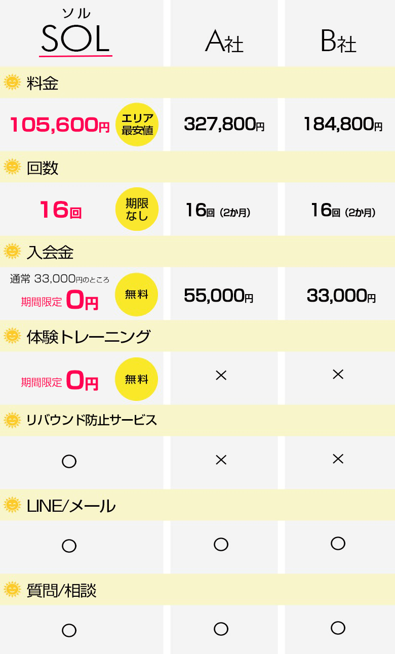 SOLは健康的かつハイレベルなパーソナルトレーニングが受けられる、パーソナルジムです。